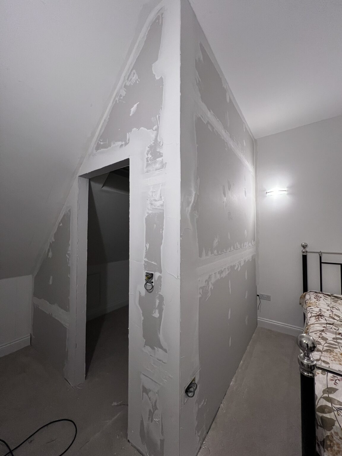 We have built the framework and plastered the walls. Prepared the positions for sockets and lightning and did the finished skimming.