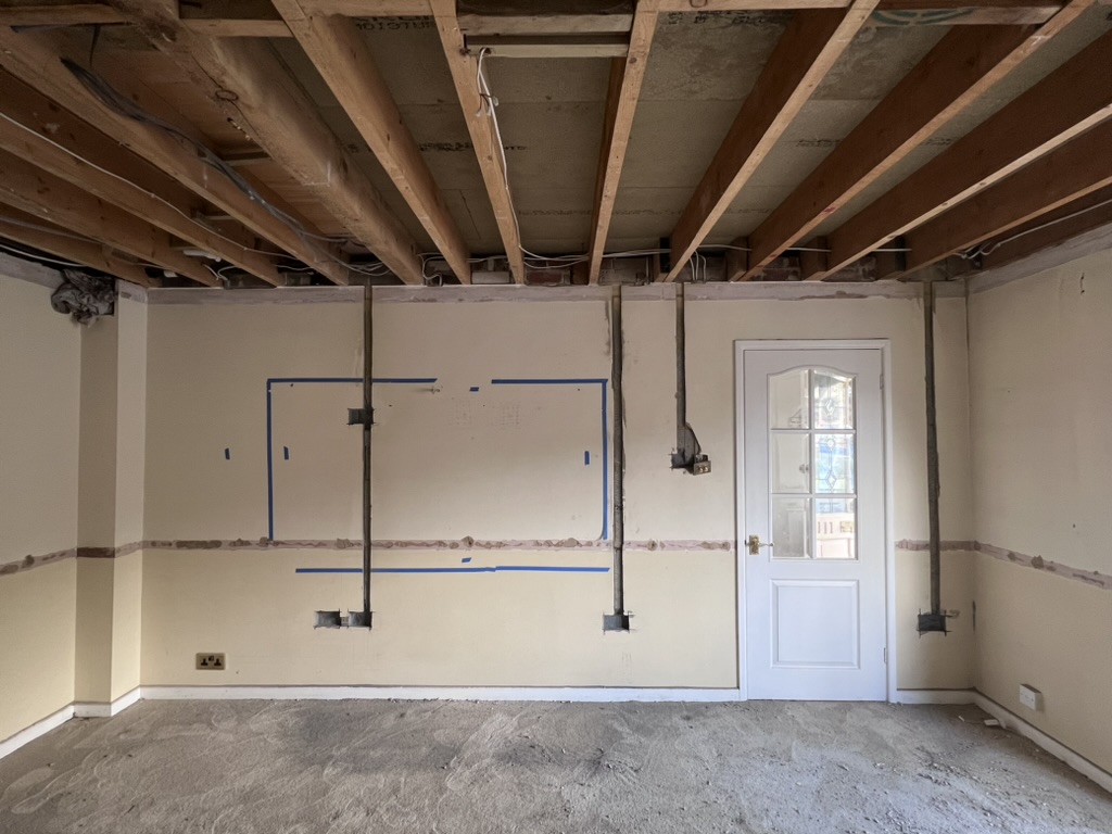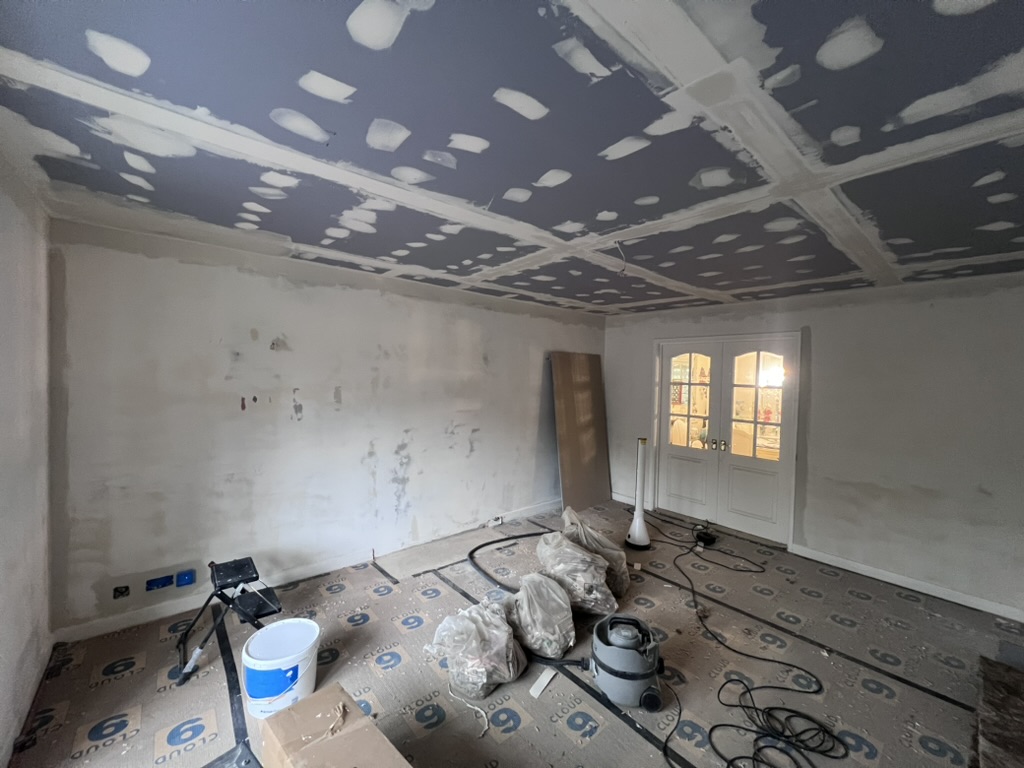 We have plastered the ceiling and prepared it for painting. And started the second fix of the electrical.